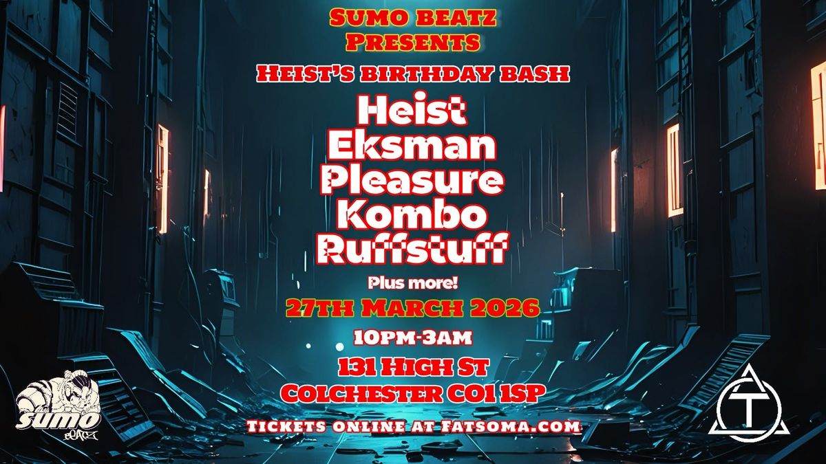 Sumo Beatz is back again this March! Bringing you more Drum & Bass to Colchester Trilogy nightclub Colchester! This month DJ Heist is celebrating his birthday! We've had a few of these special nights in the past and the line ups, music and vibes have always been one to remember as many of you will recall. Heist has curated a line up of awesome headline artists alongside the birthday boy himself and the freshest local artists!