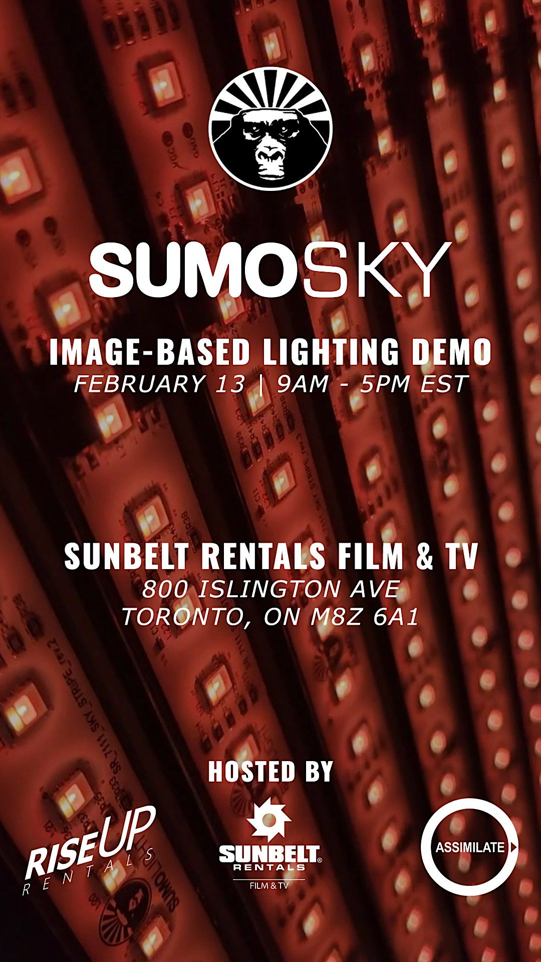 Rise Up Rentals, in collaboartion with Sunbelt Rentals Film & TV and Assimilate, will show you how SUMOSKY can be used for image-based lighting on traditional film sets, with a focus on interactive gradient backgrounds, effect-heavy scenes, and instant green/blue screen work.