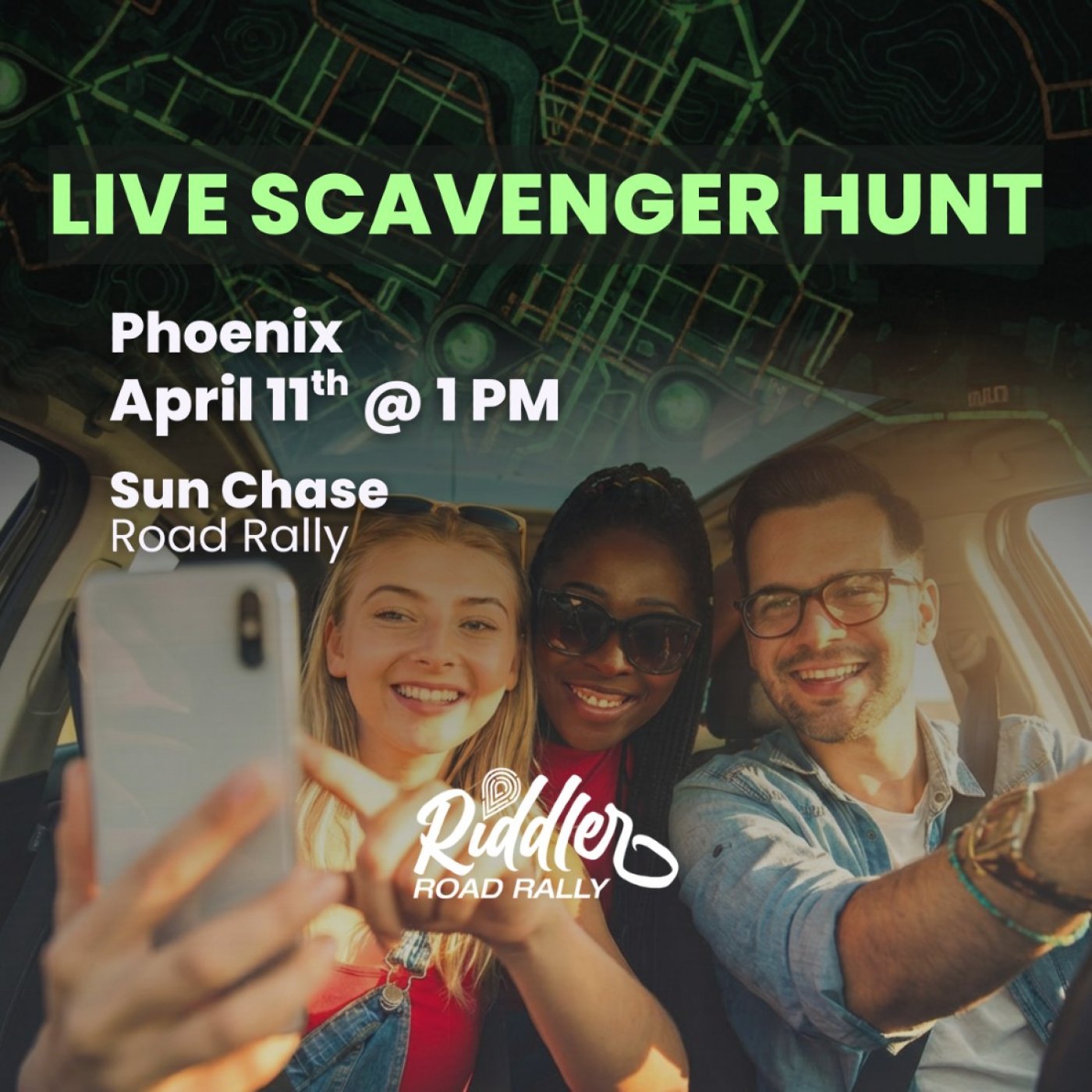 Shift into high gear for a day of discovery and competition! Jump behind the wheel to navigate a series of clever clues and hidden stops across the sun-drenched streets of Phoenix, racing against time and rival crews. Every solved puzzle brings you closer to victory as you uncover local landmarks, hidden gems, and unexpected surprises. Play solo or with a team of up to five. 10% of every entry fee fuels a growing cash jackpot, split 60/25/15 among the top 3 teams. Whether you’re chasing the win or just out for the ride, Sun Chase Road Rally delivers high-energy fun, teamwork, and a fresh way to explore the desert city with friends and family.