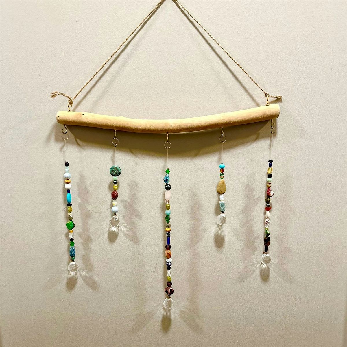 A brand new workshop from La Mia Mano Jewelry- make a suncatcher using real gemstones and driftwood.