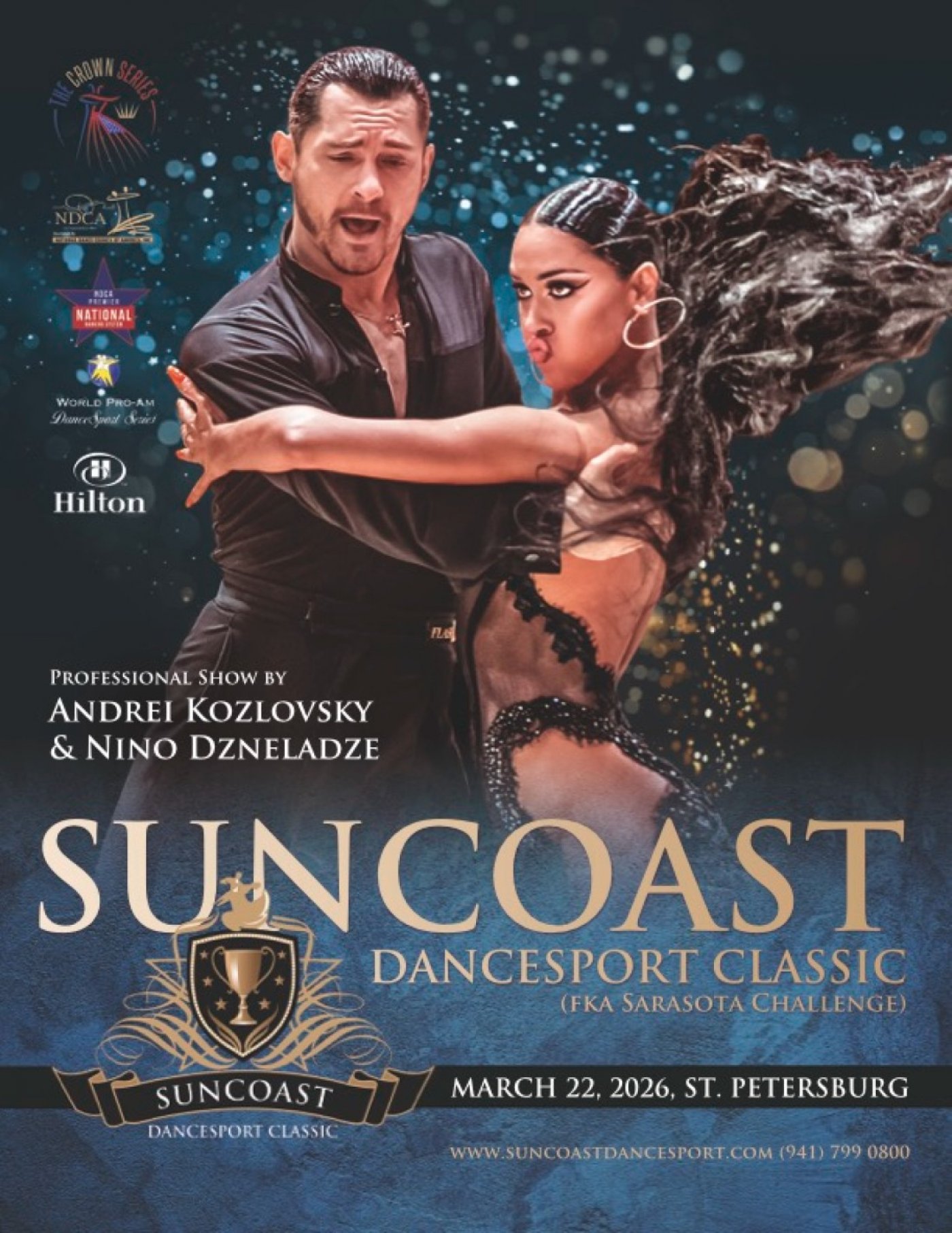 “The Suncoast Classic is more than a competition—it’s a celebration of dance, dedication, and community,” said the event organizers. “We are thrilled to bring this extraordinary event to St. Petersburg and share the beauty of ballroom dancing with audiences on Florida’s Gulf Coast.”