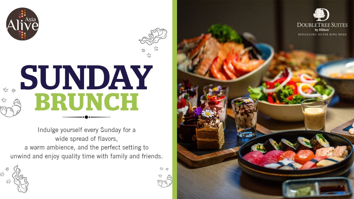 Enjoy a relaxed Sunday Brunch at Asia Alive, featuring an extensive spread of global flavors in a warm and inviting setting. Perfect for families and friends, the experience includes live music and engaging activities for all ages.Venue: Asia Alive, DoubleTree Suites by Hilton Bengaluru Outer Ring RoadIncludes: Live Music, Kids Zone, Tattoo Artist, Caricature Artist, Magician, Pool Access