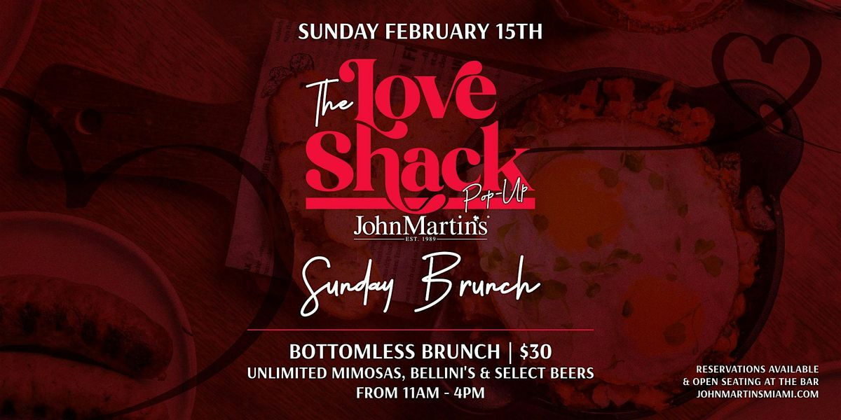 Join us at JohnMartin’s for The Love Shack Pop-Up featuring a Sunday Bottomless Brunch on Sunday, February 15th. Enjoy unlimited mimosas, bellinis, and select beers for $30, available from 11:00 AM – 4:00 PM.