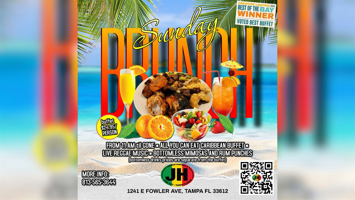 Dine like you're in Jamaica! 🥘🍍 Satisfy your cravings on a Sunday with a dose of Jamaican flavor at our buffet from 11 am! With live reggae music from 12 PM to 4 PM.