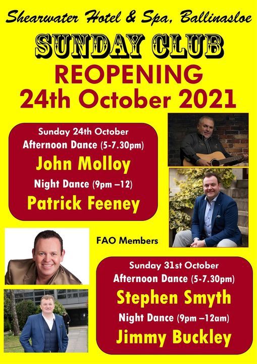 Back from Sunday the 24th of October.Afternoon Dance- 5pm to 7.30pm