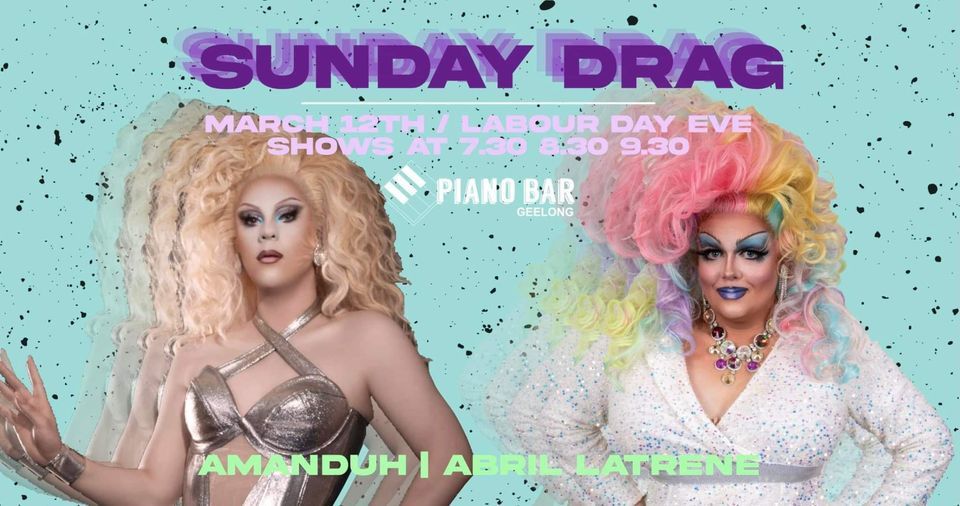 Join us for a very special Public Holiday Eve edition of Sunday Drag at Piano Bar Geelong.Featuring the outrageous Abril Latrine and Piano Bar's own Amanduh, join us for a Sunday night tradition with Joss Russell on the piano taking your song requests all night long.