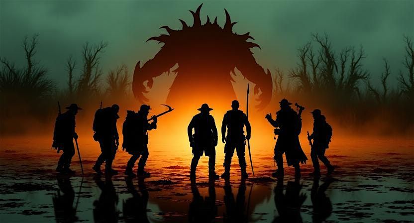 Choose between a human barbarian, human bard, Tiefling sorceress, elf druid, halfling arcane trickster, tabaxi Wizard, blue dragon born barbarian, dwarf cleric, and bird folk fighter. Of these hero choices six adventurers will explore an abandoned swamp village where all the inhabitants have disappeared but lurking in the shadows of the swamp is an ancient evil.
