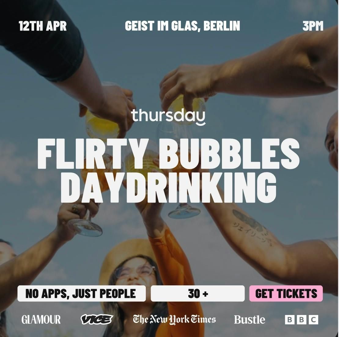 At Flirty Bubbles, we’re ditching the clichés and turning daydrinking into a playground for singles 30+.This isn’t awkward speed dating, it’s grown-up mingling with a side of sass. Sip, flirt, laugh — and if you leave with more than just a happy buzz, we won’t tell.