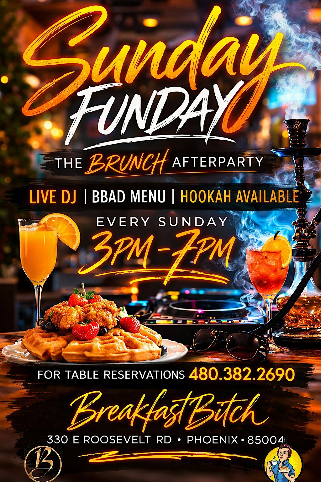 Join us every Sunday from 3PM–7PM at Breakfast Bitch in Downtown Phoenix for Sunday Funday: The Brunch AfterParty — a weekly vibe where brunch meets a day party atmosphere.