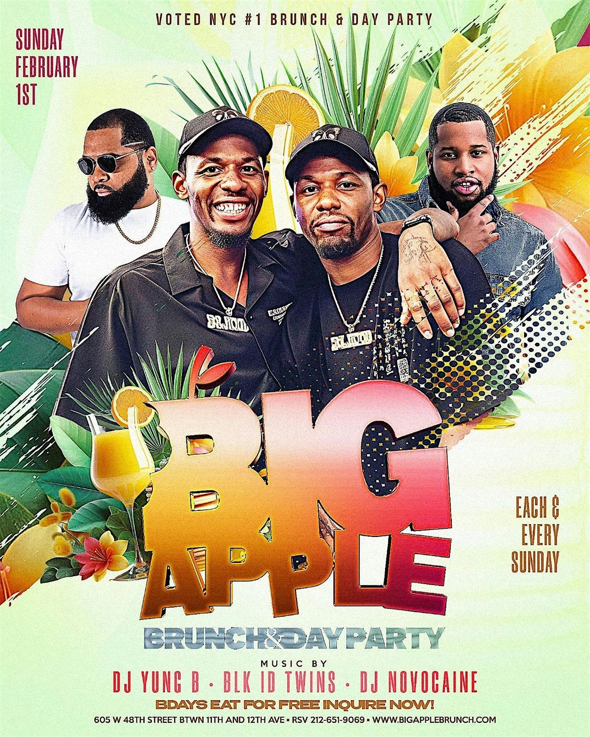 Big Apple Brunch & Day Party Sunday 2-10pm