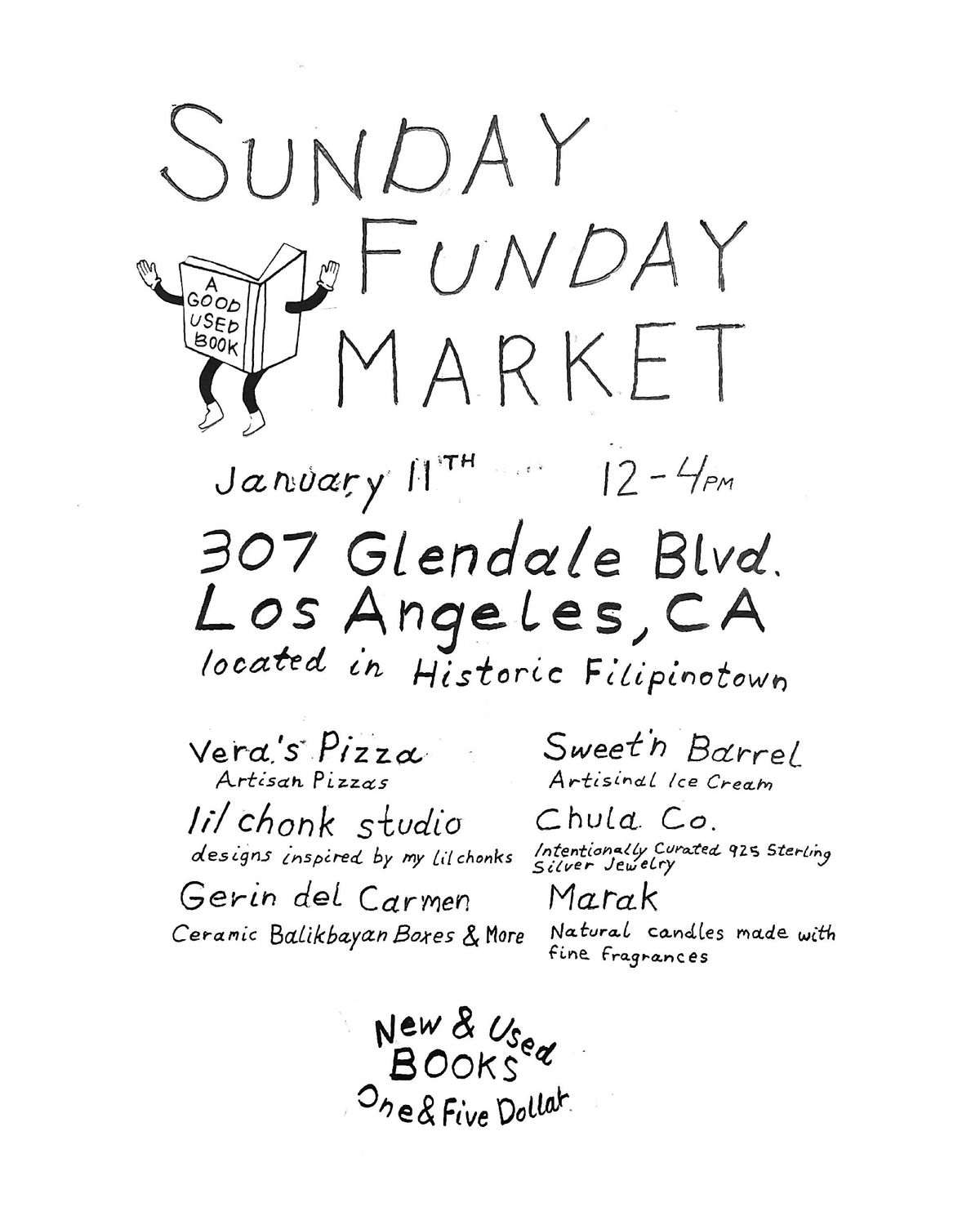 Sunday Funday Market is here at A Good Used Book in Historic Filipinotown! The bookstore is stocked with used and new books, and this week we're featuring artisan pizza, super delicious ice cream, cat art and prints, silver jewelry, balikbayan boxes, and natural candles! With refreshments provided!