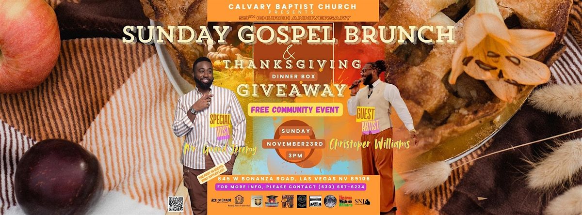 Join us for a soulful Sunday filled with uplifting live gospel music and delicious food! We will be hosting a special Thanksgiving Meal Box Giveaway.