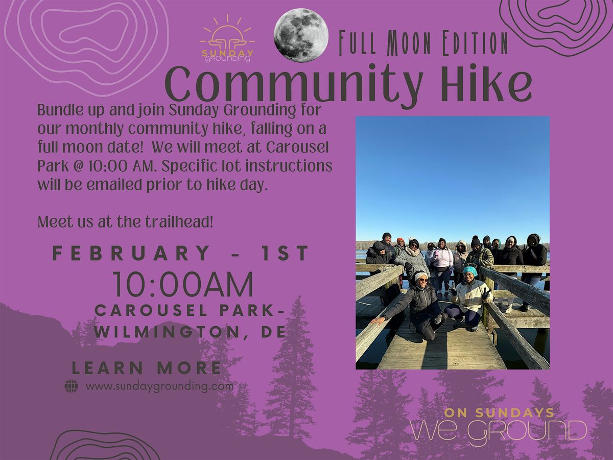 Bundle up and join Sunday Grounding for our monthly community hike, falling on a full moon date! We will meet at Carousel Park @ 10:00 AM.