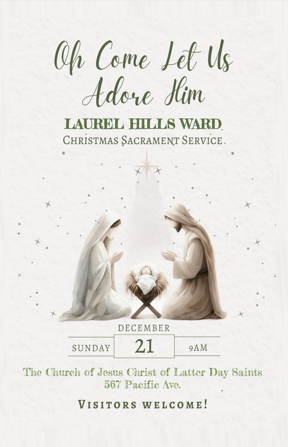 ALL ARE WELCOME to join in a wonderful morning service of commemorating the birth of our Savior, Jesus Christ, through song and message. Please come and join your faith with others to praise Him during this Christmas season.