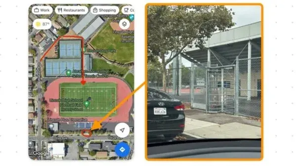 The field is located on the corner of Olive Ave and Wabash Ave, there's street parking on Olive Ave or on Wabash Ave. Even though the field is open to the public, the main gates on Olive Ave are often locked. You have 2 options to reach the field, you can either walk in through the dirt parking lot around the tennis courts (see red line on the map picture) or you can climb the revolving door on Olive Ave (circled in map picture and I'm also showing a picture)