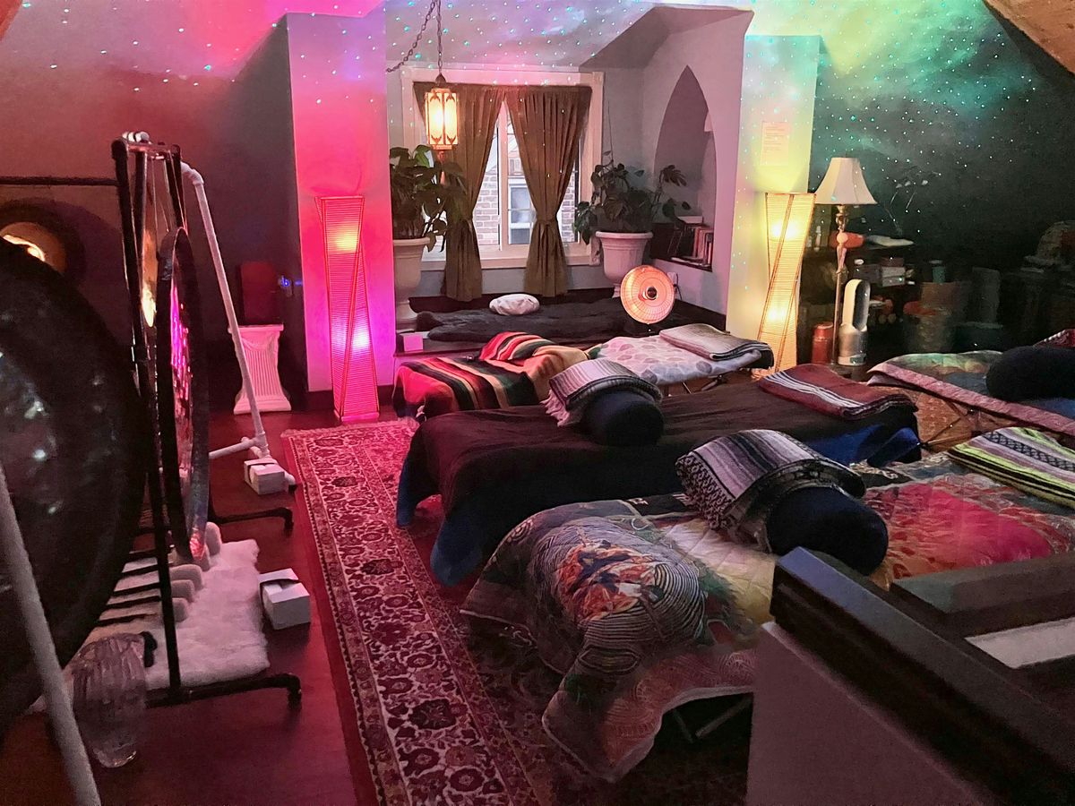 This is a lying-down, non-movement experience. There is nothing to do and nowhere to get to. The gongs create a continuous sound field that many people experience as calming, clarifying, and restorative.