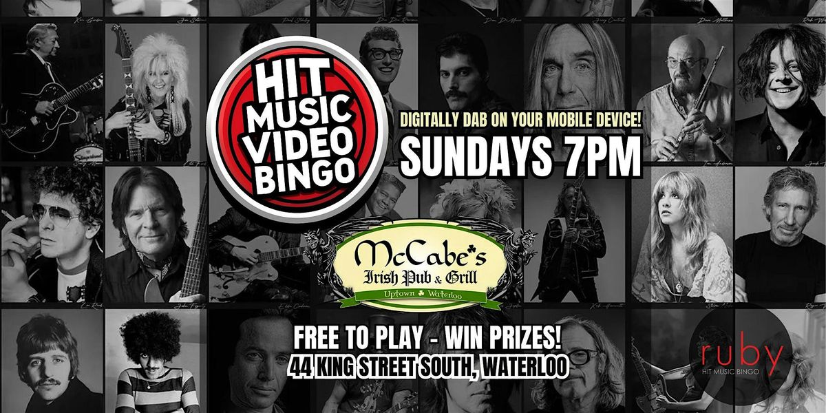Welcome to Sunday Night Hit Music Video Bingo at McCabe's Irish Pub & Grill in Waterloo! Join Host Dan Shantz for a fun-filled evening of music. With daily specials and an atmosphere that feels like a friendly home away from home, McCabe's is a great place to meet up for a pint and a proper laugh.