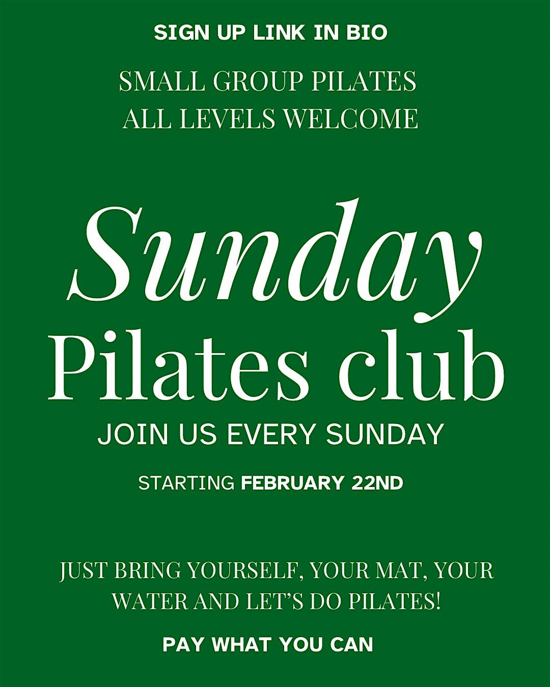 Sunday Pilates Club! 6 slots every Sunday for a group Mat class with hands on corrections!