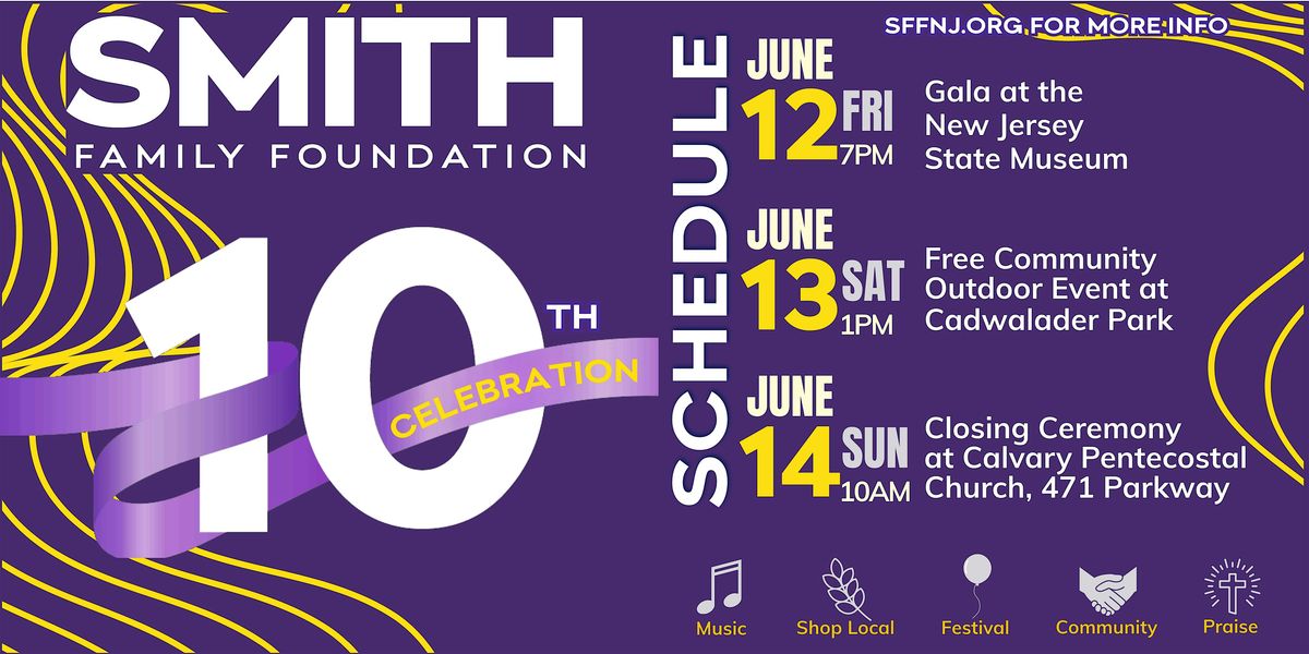 Join us in the sanctuary to celebrate God's work for the past decade through the Smith Family Foundation and its commitment to "Sowing Seeds, Changing Lives"! Leaders in the New Jersey community unite to celebrate the lasting impact of the Smith Family Foundation in the areas of education, financial empowerment, cultivating future leaders, and urban ministry. Be a part of changing the trajectory of the Trenton community, building a better future for New Jersey, and 'being the change' for a brighter America.