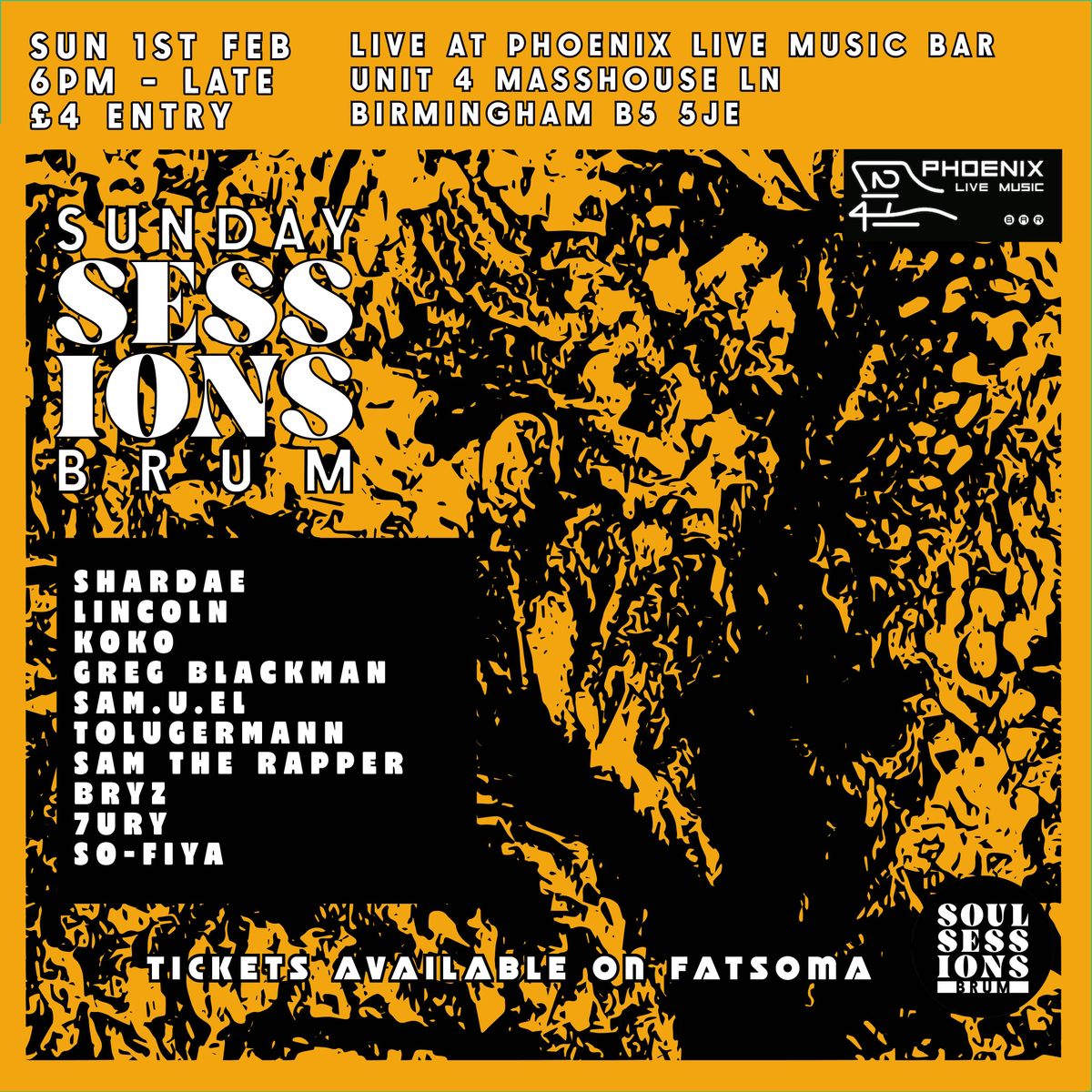 Sunday Soul Sessions at Phoenix Bar - Featuring Shardae + Lincoln + Koko + Greg Blackman + Sam.u.el + Tolugermann + Sam The Rapper + Bryz + 7ury + So-Fiya