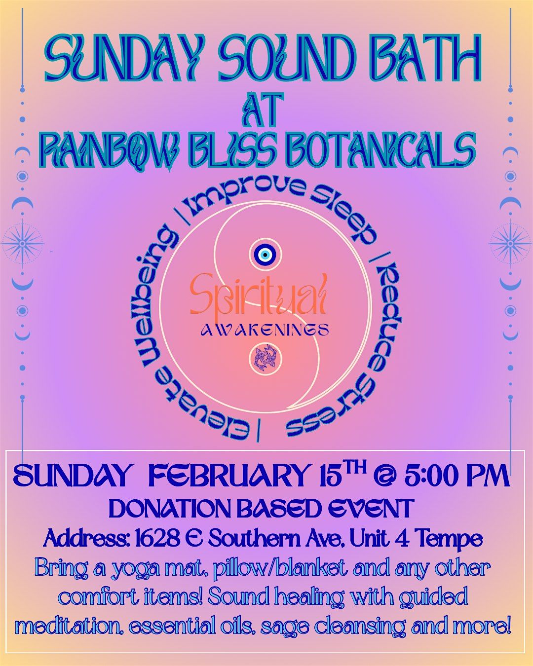 Come relax and take a break from the daily grind with a sound healing session! Take one hour of your week to lay down and allow the benefits of sound healing to take you on a journey to peace. No experience necessary, just come with an open mind!
