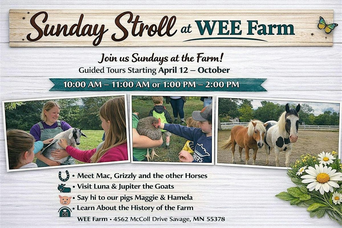 Join us for a relaxing visit to WEE Farm! Meet our friendly farm animal residents like our horses, our feinting goats, pigs, chickens, donkey, and other critters! We will show you around, share farm history including the Big Barn and the multicultural garden. Fun activities for the kids.