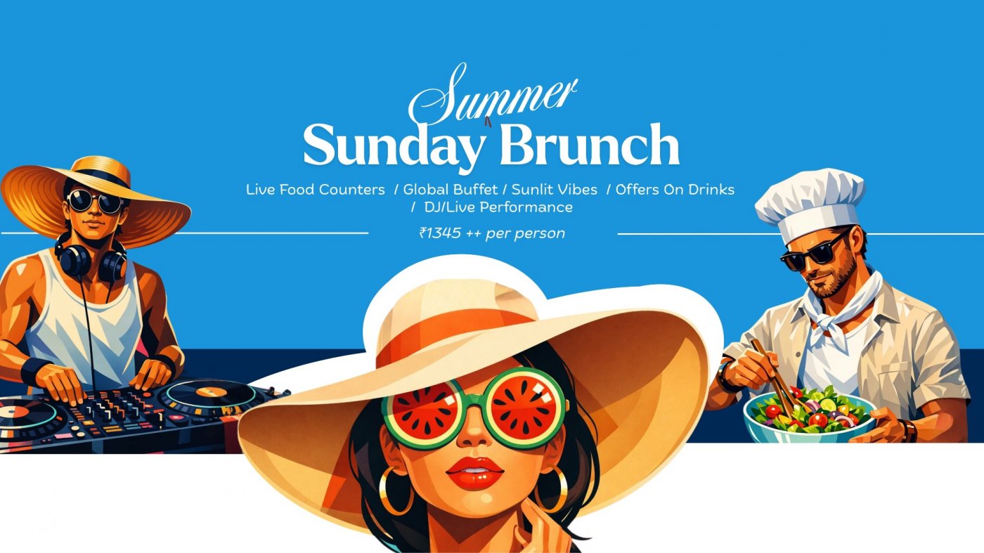 Make your Sundays brighter with a refreshing Sunday Summer Brunch! Indulge in a vibrant 5-course global buffet, exciting live kitchen stations, refreshing summer drink offers, and lively beats with a Live DJ—all for just ₹1345 + taxes per person.