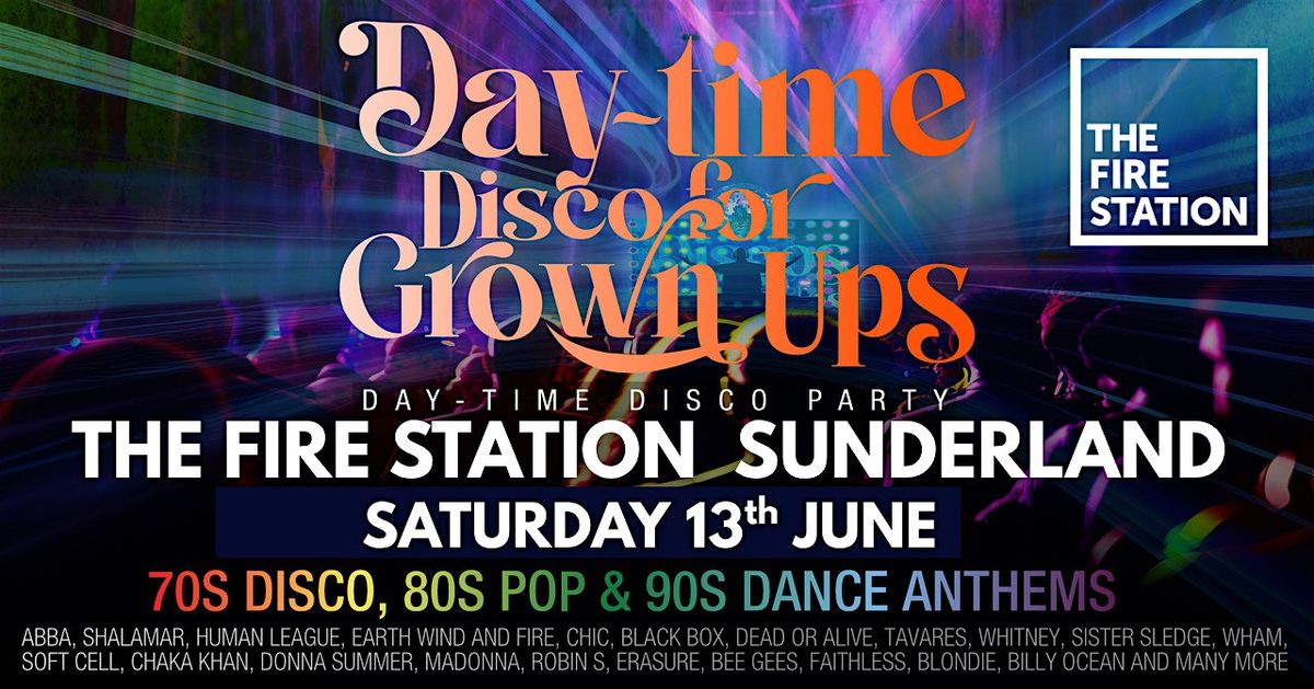 The legendary Discos for Grown ups DAY-TIME disco party is coming to the Fire Station, Sunderland on Saturday 13th June for another incredible day-time disco to remember!