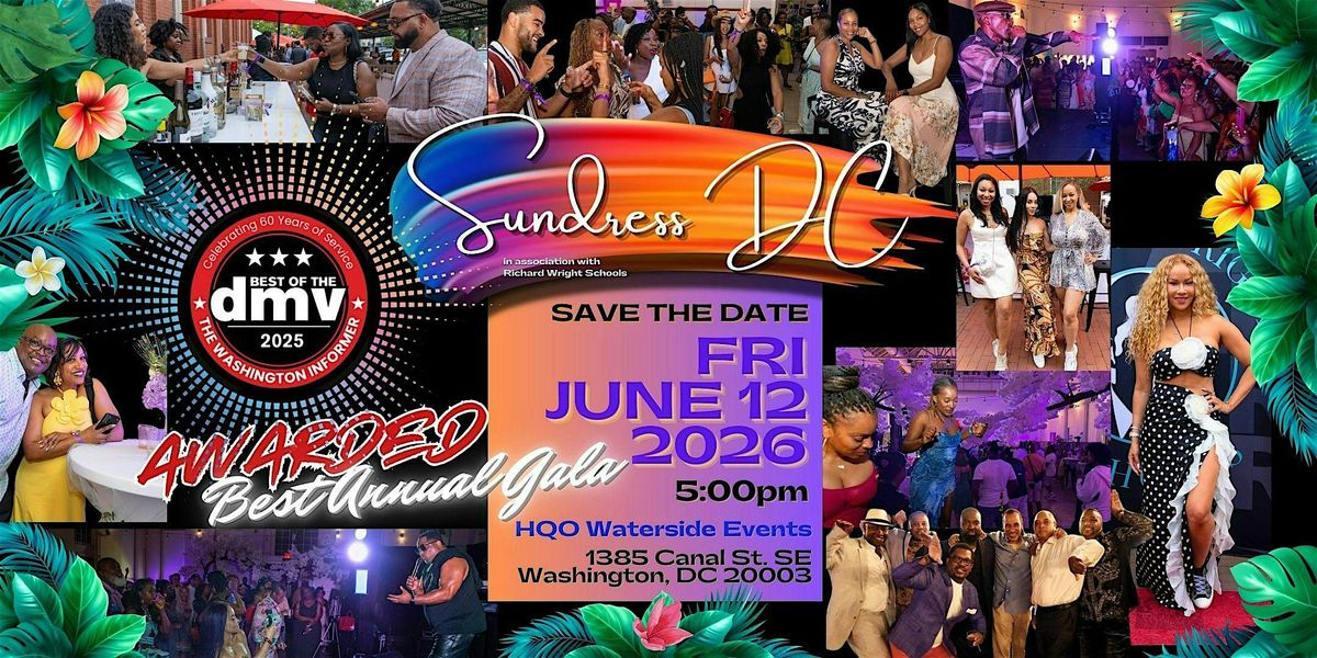 YOU DO NOT WANT TO MISS THIS!!!! Voted by popular choice by the people... the BEST ANNUAL GALA IN THE DMV through the Washington Informer's BEST OF THE DMV 2025! Get your tickets NOW for Sundress DC at a beautiful brand new location on the harbor at HQO Waterfront Events!