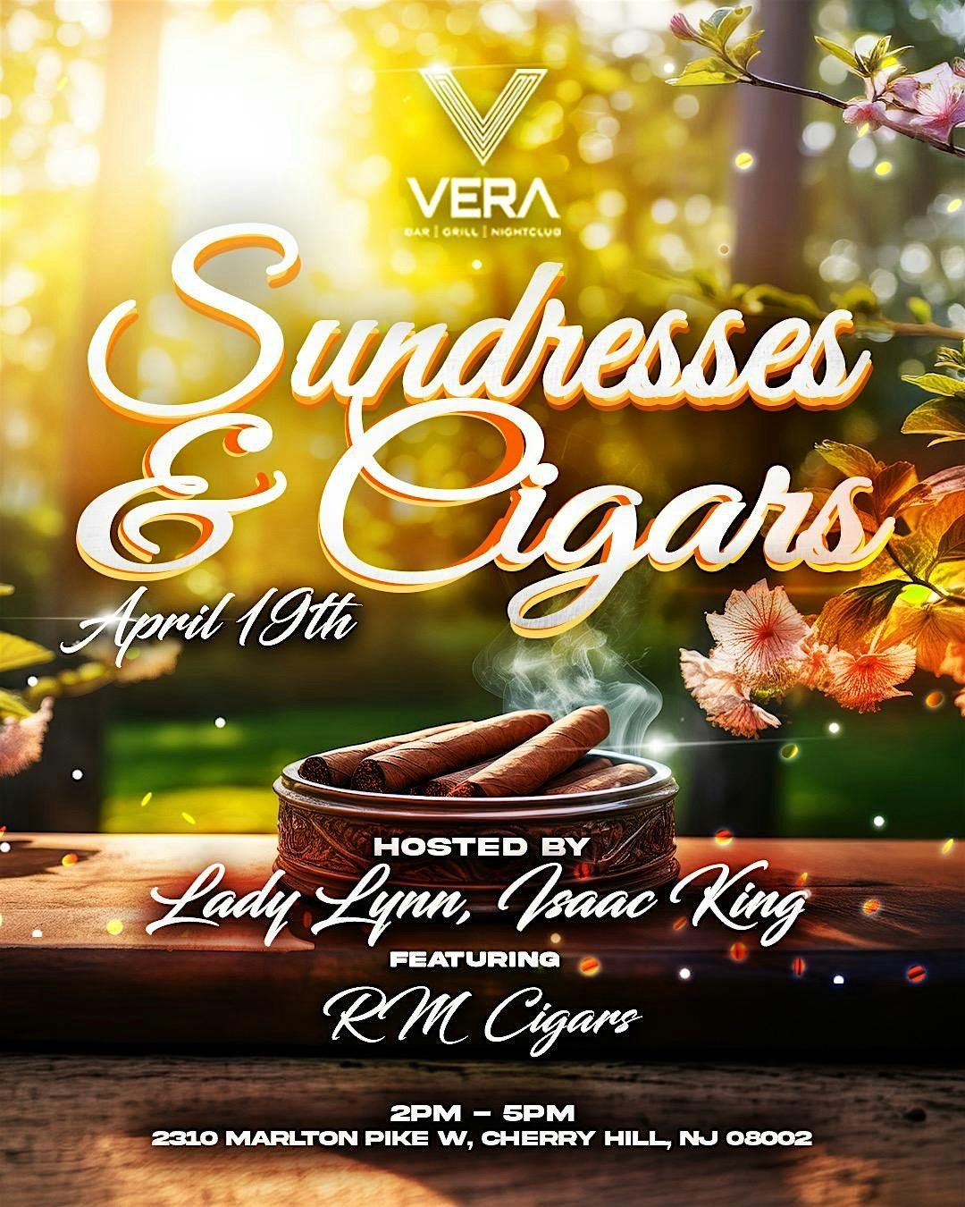 Get ready for a chill afternoon at Vera Cherry Hill on April 19, 2026 at 2:00 PM Slip into your favorite sundress and enjoy some quality cigars with friends. It’s all about good vibes, great company, and a relaxed atmosphere. Don’t miss out on this fun, laid-back event where style meets leisure!