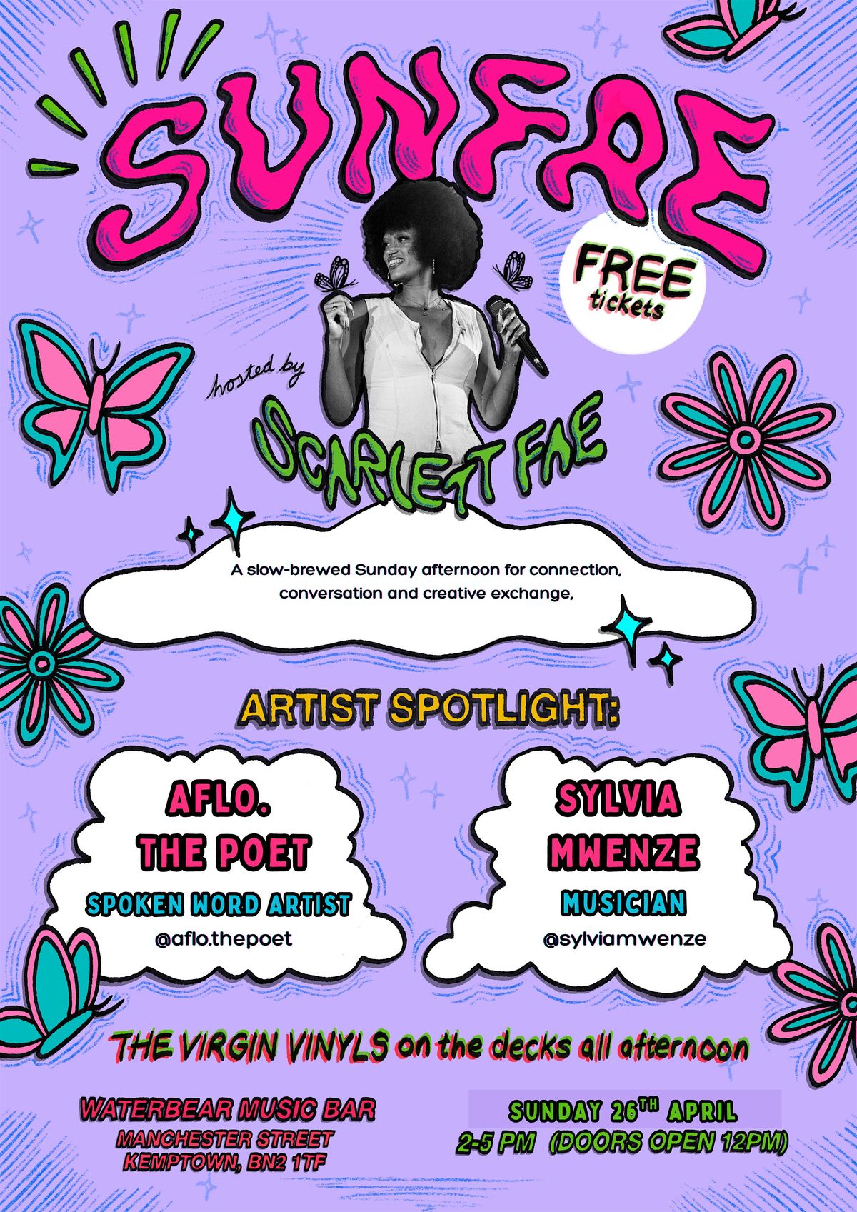 WaterBear MusicBar is in Kemptown (formerly Latest MusicBar) and will be open from 12pm with the event starting promptly at 2pm. The venue is wheelchair-accessible, though sadly the toilets aren’t fully accessible at this time.