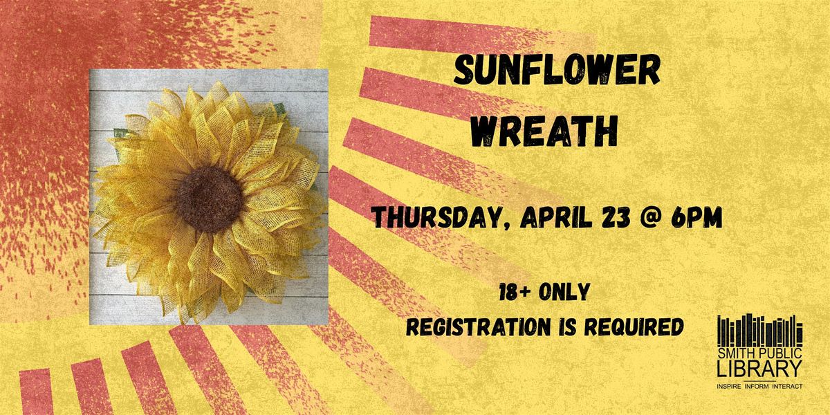 Participants will make a deco mesh sunflower wreath. All supplies needed will be provided by the library.