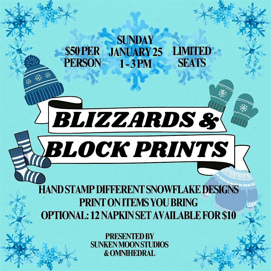 Winter blues got you down? Need to get out of the house and around town? Try a new craft, block printing, without the commitment of buying all the supplies. For this event we’ll be printing different snowflake designs on items you bring. Items can be clothing or paper, please make sure to bring appropriate protection to take your items home (such as a trashbag to cover clothing, etc). If you’d like to purchase a 12 napkin set for a festive placesetting, they will be available onsite for purchase for $10 additional dollars. Unleash your creative side to create some unique, one of a kind, snowflake block prints on clothing and paper. This workshop offers the perfect opportunity to learn, create, and find your inner artist.
