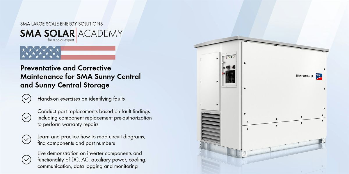 Upon request and on a limited basis, SMA offers a training program for qualified solar equipment technicians to self-perform central inverter preventative and corrective maintenance. Following the successful completion of the training, the customers technician will be permitted to safely perform inverter maintenance tasks in a manner that is safe and consistent with industry best practices. All training is provided at the direction of and for the benefit of the solar plant owner to minimize lost production.