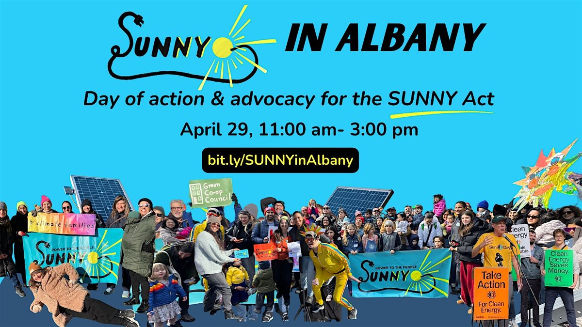 Join the SUNNY Coalition in Albany for a family friendly rally, solar demo and advocacy day in support of the SUNNY Act for plug-in solar.Learn more at theSUNNYAct.org.The exact details of the day including schedule and transportation will be confirmed in April. Please RSVP if you're interested in attending and want to stay in the loop.Location: Empire State Plaza, 100 S Mall Arterial, Albany, NY, 12242This event is hosted on Mobilize.View on MobilizePrimary event communications come from Mobilize.