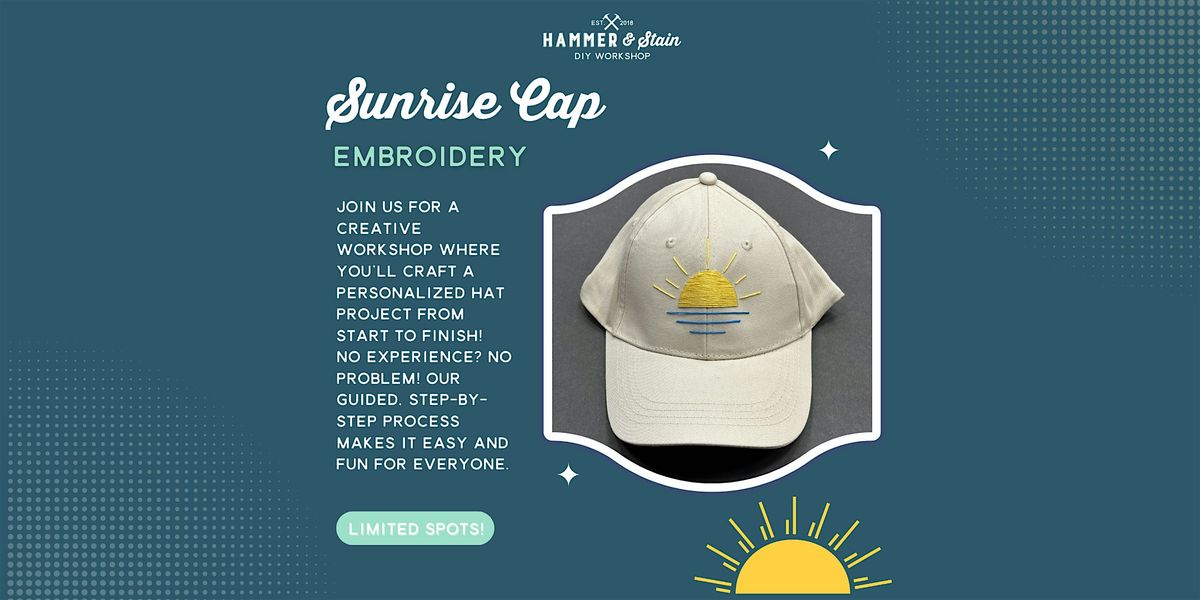 Join us for a unique and relaxing Sunrise Cap Embroidery workshop at Hammer & Stain Rockville! ✨About this Event
