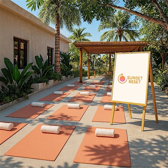 Sunset Reset is a golden hour athleisure social designed for connection, recovery, and community. The evening begins with an optional, guided Pilates session led by @RachelLoebs, then gently transitions into our signature social experience filled with music, conversation, and feel-good energy.
