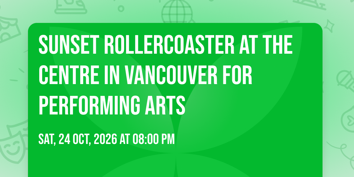 ✨ Enter a world of endless possibilities at Sunset Rollercoaster at The Centre in Vancouver for Performing Arts, where every moment tells a story! 🏛️ The stunning The Centre in Vancouver for Performing Arts in vibrant Vancouver, BC transforms into a realm of wonder on October 24th, 2026 at 08:00 PM. 🌟 They have crafted an experience that goes beyond the ordinary, combining elements of surprise, delight, and pure entertainment. Every detail has been thoughtfully considered to ensure your journey with us is nothing short of extraordinary. 🎯 Join fellow adventure seekers and memory makers in this celebration of imagination and innovation. 🎊 Reserve your spot today and be part of something truly special!