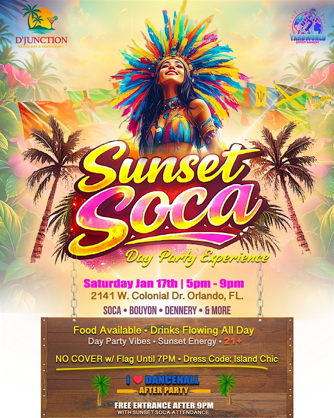Sunset Soca is Orlando’s premier Caribbean day party, bringing the heat early with nonstop island energy, vibrant vibes, and a crowd that comes to move.