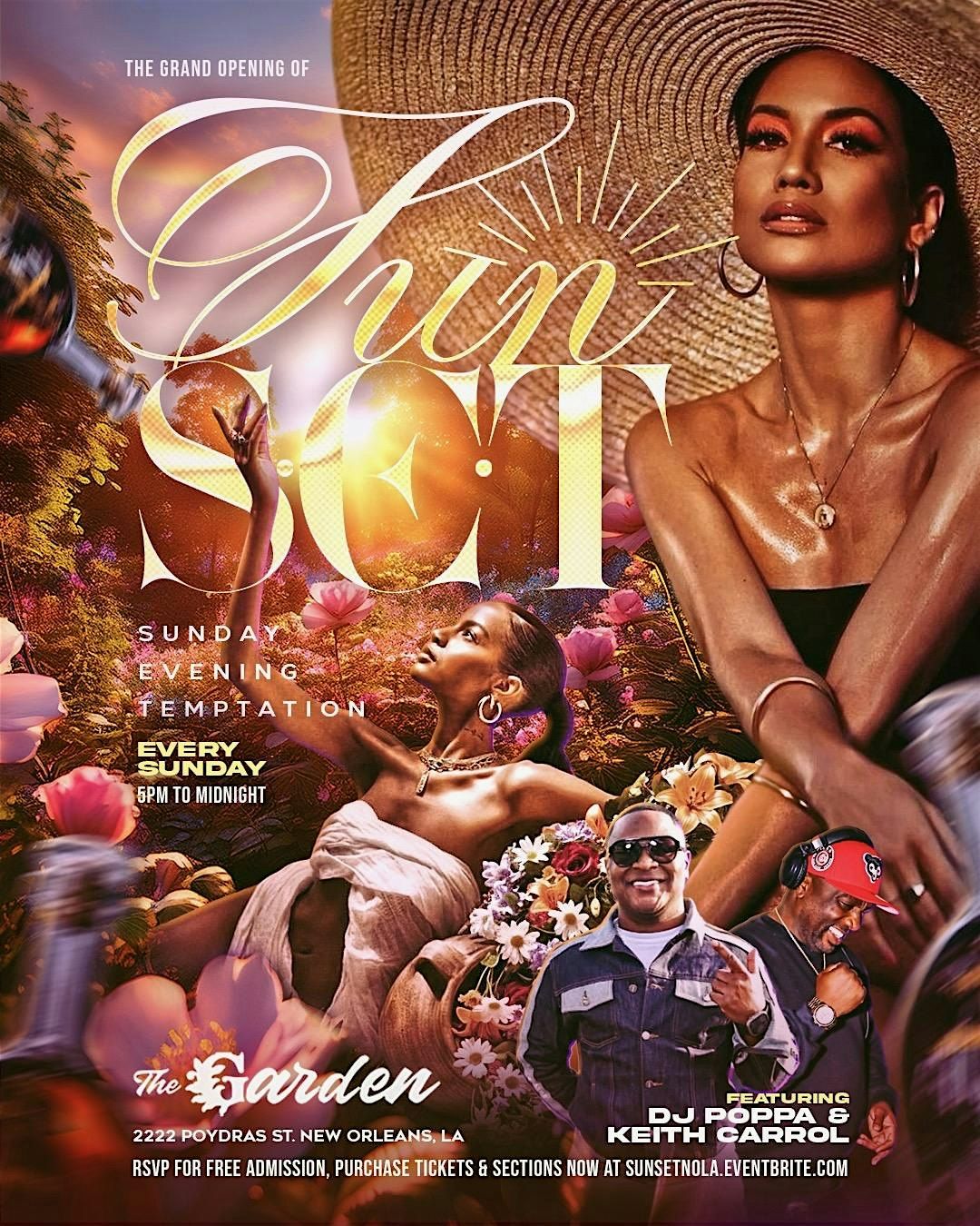 SUNSET SUNDAY EVENING TEMPTATION SUNDAY @ THE GARDEN MARCH 8, 2026FEATURING DJ POPPA & KEITH CARROLL