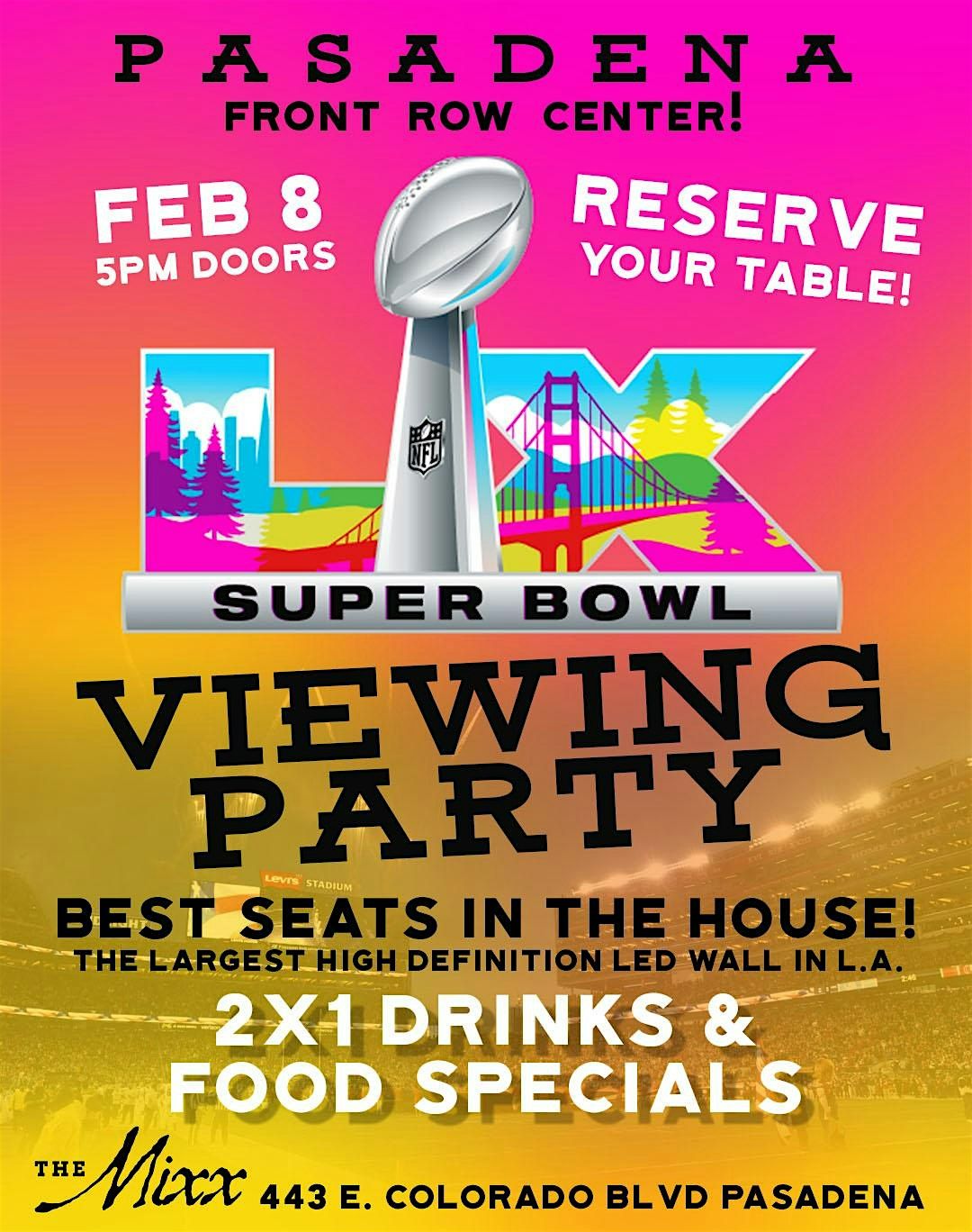 Its SUPER BOWL 2026 and we have THE BEST SEATS IN THE HOUSE with the largest High Definition LED Wall in town with full concert surround sound, Front Row Center!