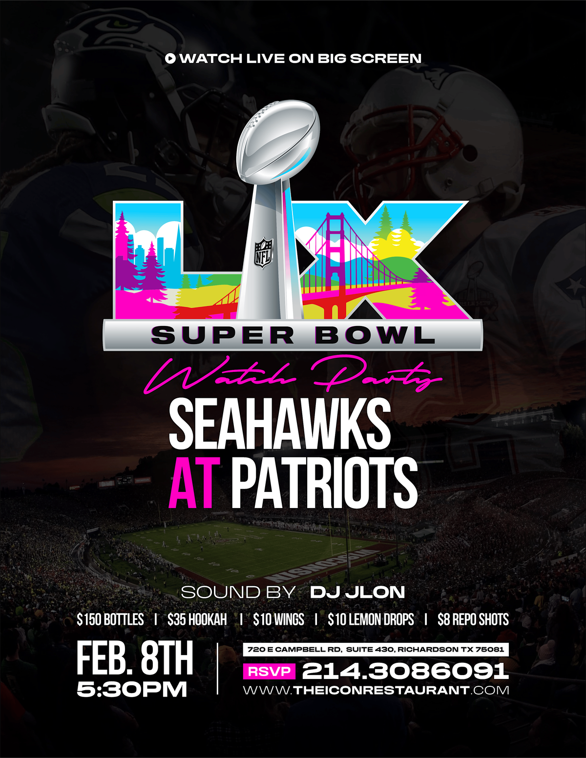 SUPER BOWL LIX WATCH PARTY Catch every play LIVE on the BIG SCREEN at The Icon!