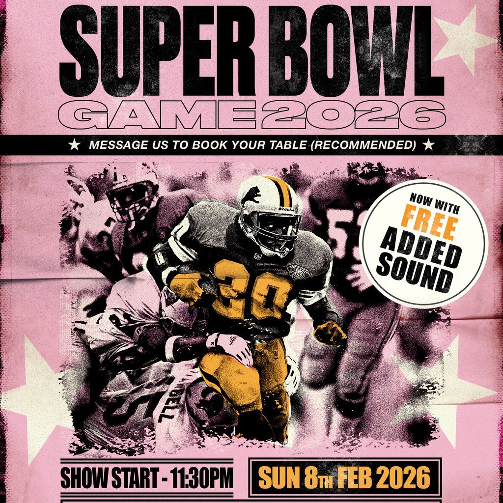 Showing the 2026 Super Bowl game LIVE on Billy's big screen!