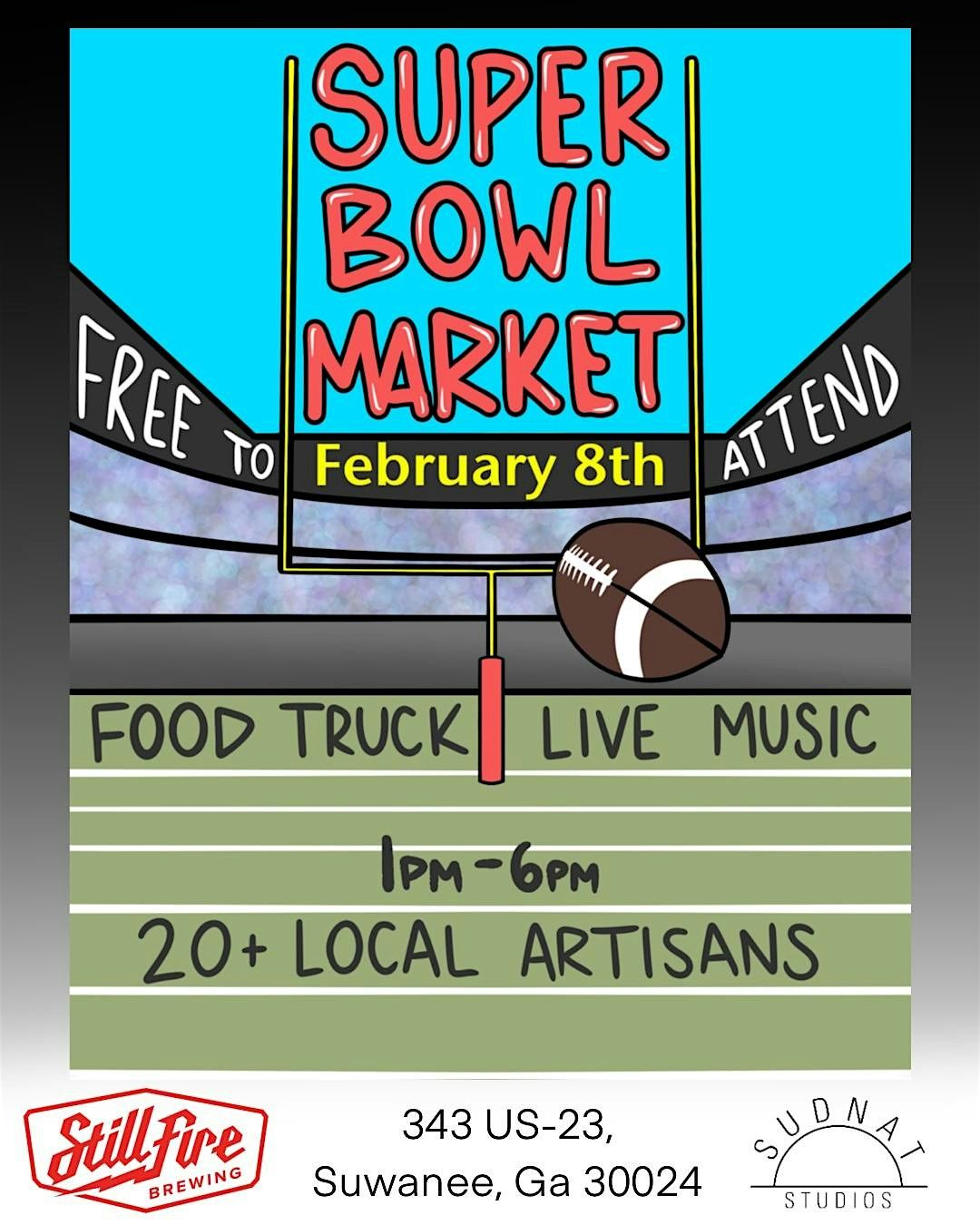 Who’s ready for the big game next month?! Join us for a Sunday Funday of shopping & drinking local before the game comes on at @stillfirebrewing Sunday, February 8th! 🎉