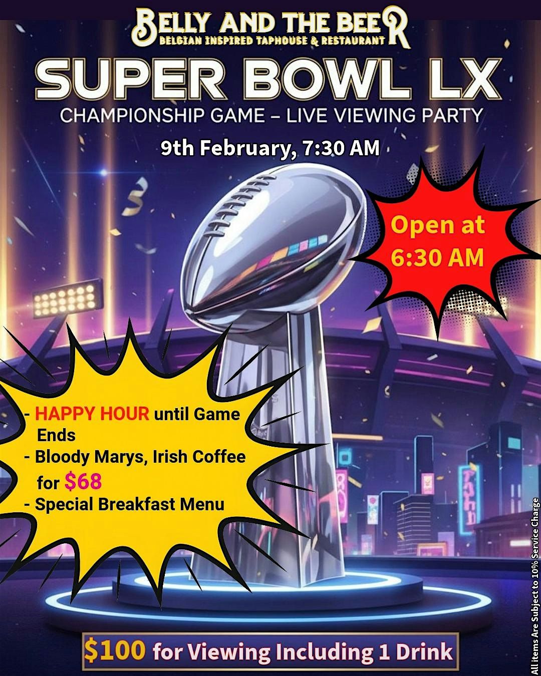 :🏈 SUPER BOWL LX LIVE VIEWING PARTY! 🏈Join us at Belly and the Beer for the ultimate Championship Game experience! We are Hong Kong's only authentic Belgian-inspired taphouse, and we're ready for the big game.Here's the game plan: