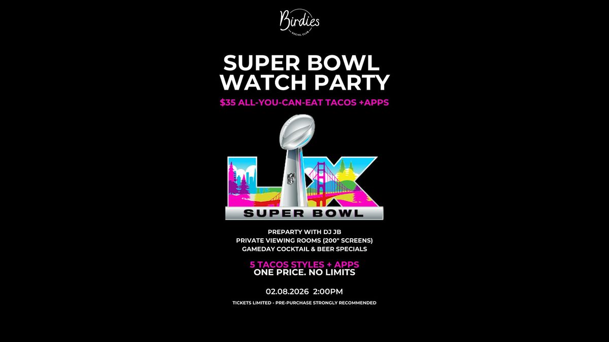 Join us at Birdies Social Club for the ultimate Super Bowl Watch Party — where big screens, bold flavors, and game-day energy come together.