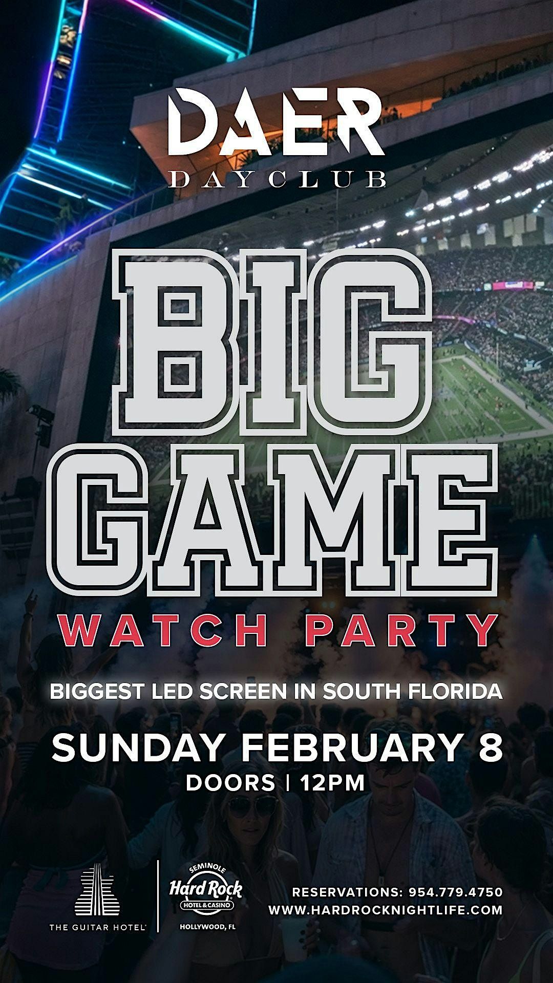 The Big Game Watch Party | DAER Dayclub . Sunday February 8thAbout this Event