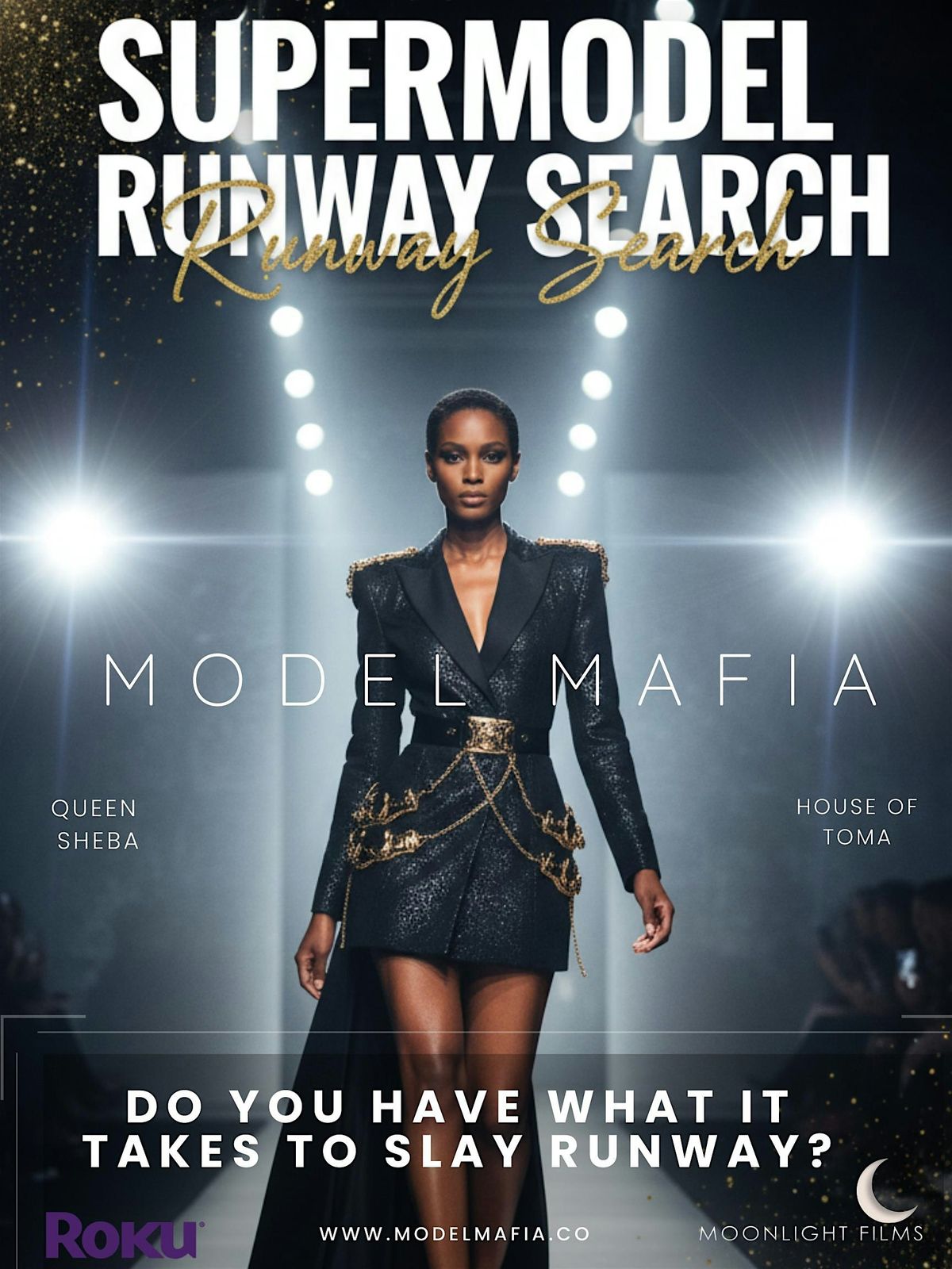 We’re searching for standout faces, fearless walkers, and undeniable star power for the Supermodel Runway Search—a televised competition streaming on Roku TV.