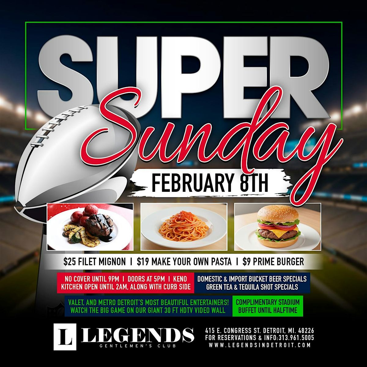 Join us for Super Sunday and cheer on your favorite team at Michigan's premier club, Legends!
