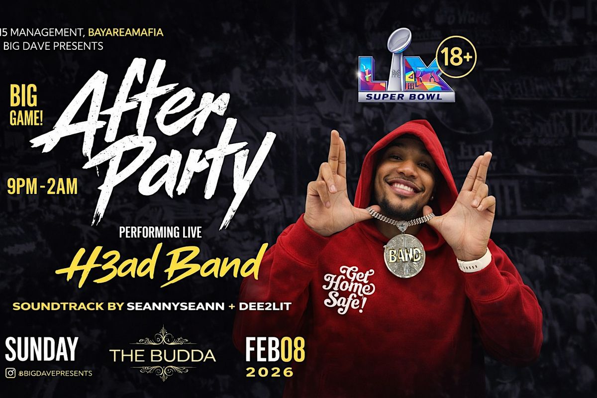 Join us for the ultimate game-day celebration on sunday featuring live appearances by H3adband..Keep the party going as THE BUDDA transforms into a high-energy nightlife takeover once the final whistle blows.